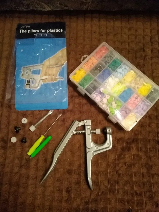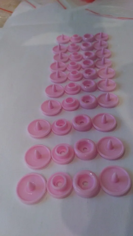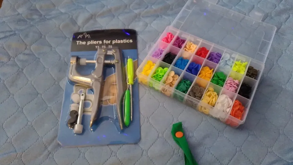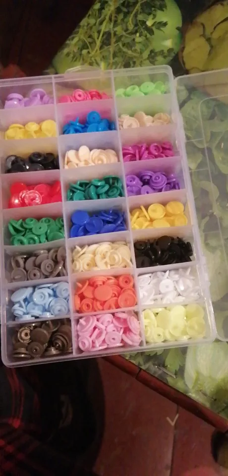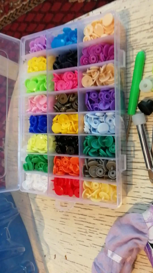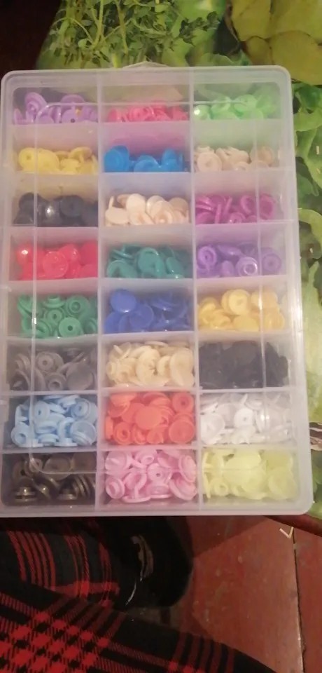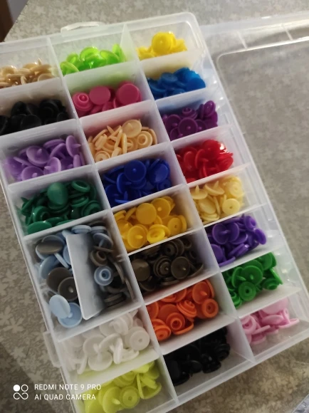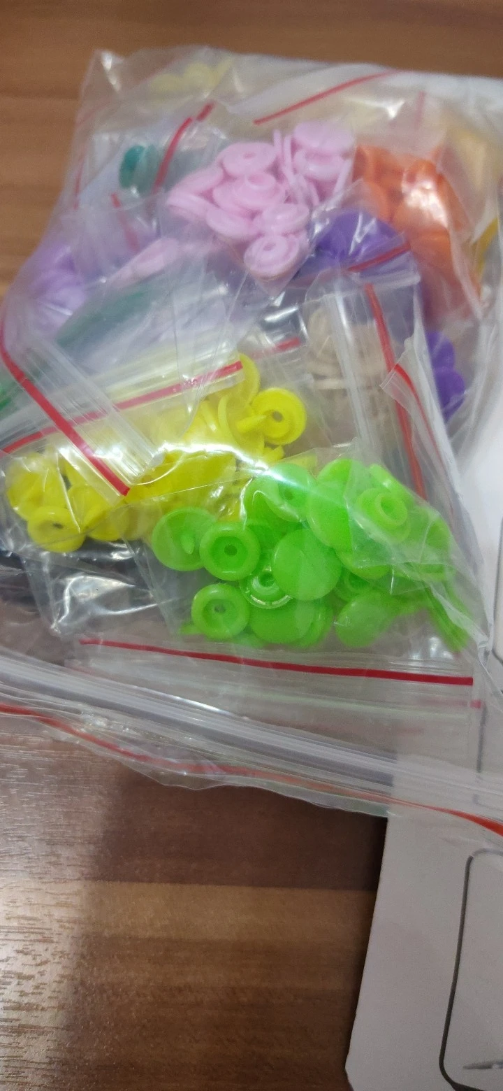 Заказ пришёл быстро, недели за 2. Кнопок каждого цвета примерно по 15 шт( считала некоторые цвета). заказывала для многоразовых подгузников. По качеству: слабее, чем те, что на хороших подгузниках типа Alva, кроме того, в некоторых элементах дырки больше, поэтому они неплотно садятся, но закрепить их можно и всё будет работать хорошо. У одного цвета кнопки были из непонятного пластика- трескались при зажиме. Но цена небольшая , поэтому нормально. инструмент нормальный. всё как в описании. заказом довольна. продавца советую. спасибо за заказ.