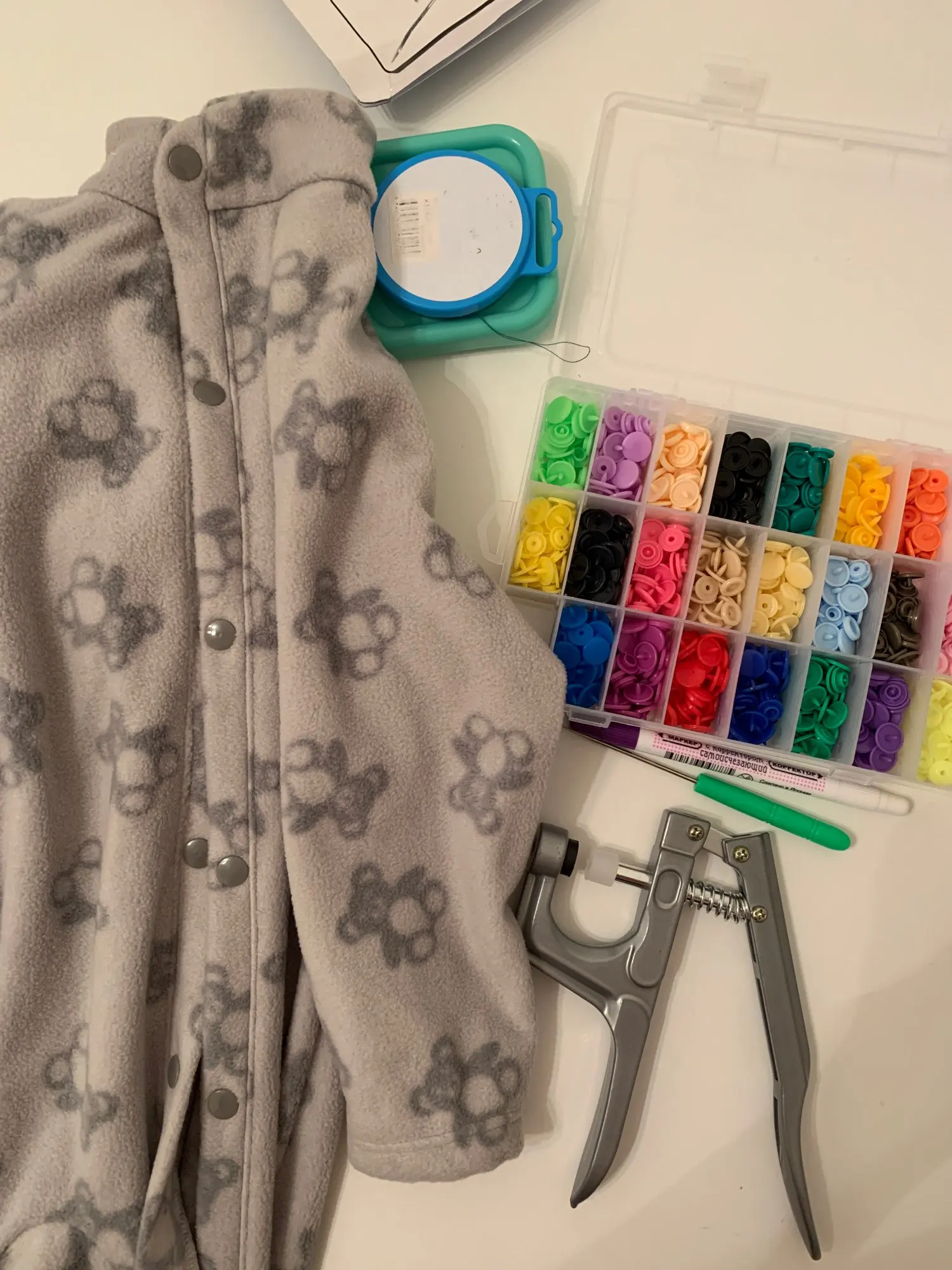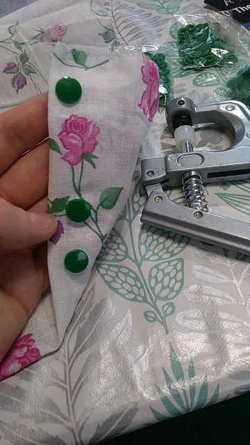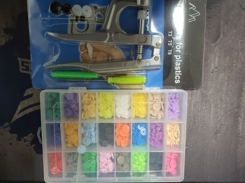 Это должно быть у каждой хозяйки. Проклепала все пододеяльники, теперь хоть закрываются. Отремонтировали кнопку на куртке. Делать кнопку - полминуты, легко!