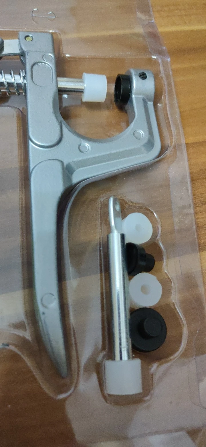 Супервещь! Доставка до Санкт-Петербурга три недели, полностью отслеживался. Для придания товарного вида самосшитым вещам совершенно необходим, ставлю кнопки и на постельное белье, и на одежду. В комплекте три насадки для кнопок разного размера, кнопки в наборе средний размер. Как пользоваться - ютуб вам в помощь. Спасибо огромное!