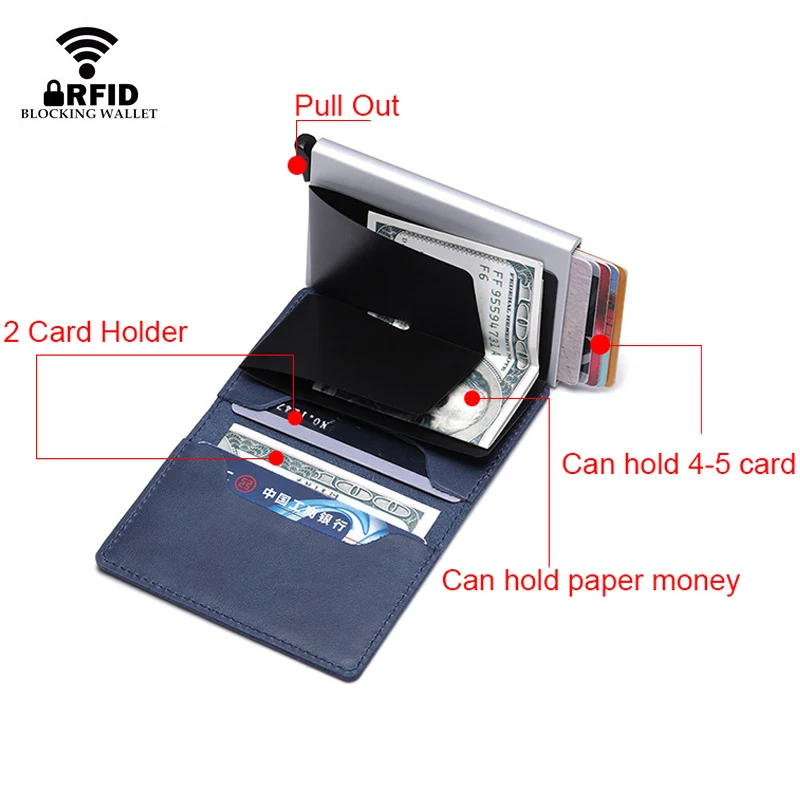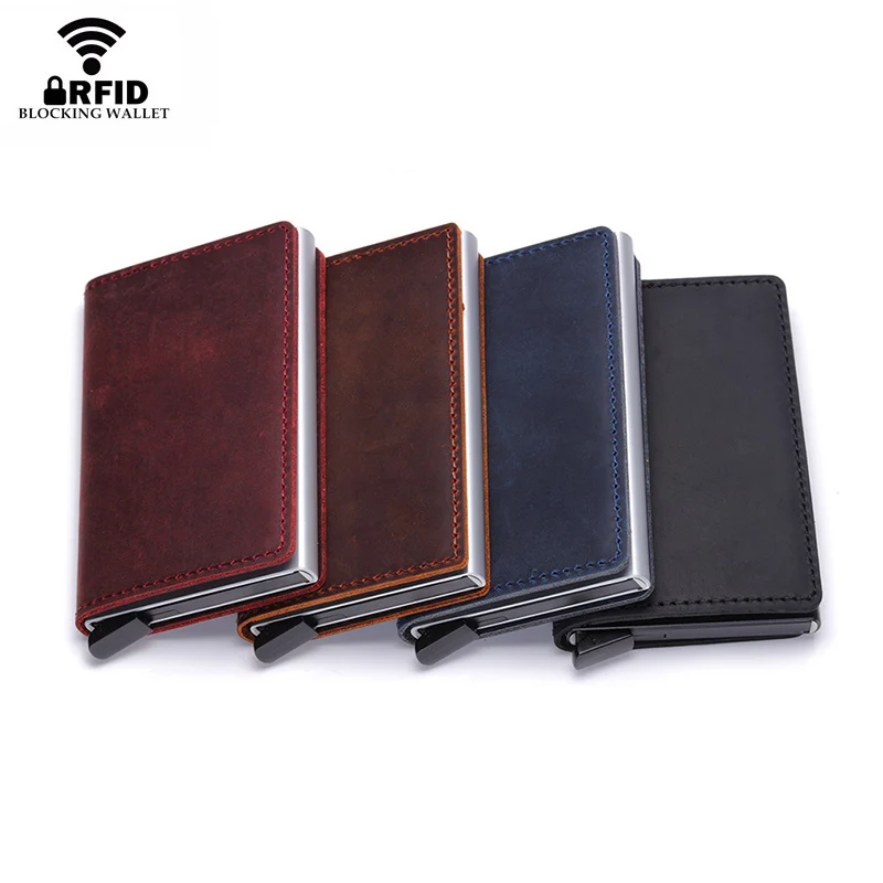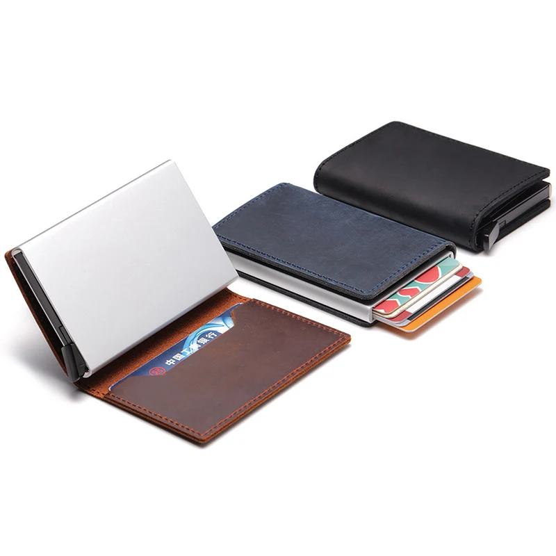 Анти Rfid металлический тонкий мини всплывающий кошелек из мягкой н...