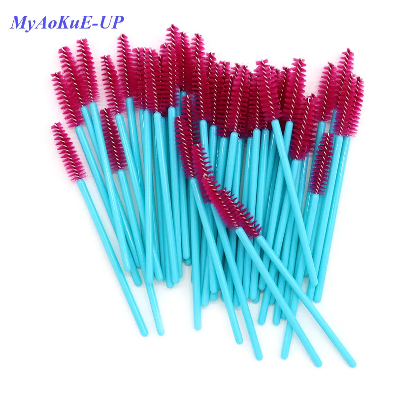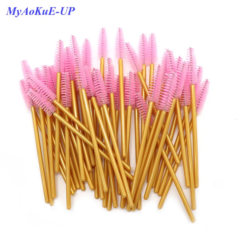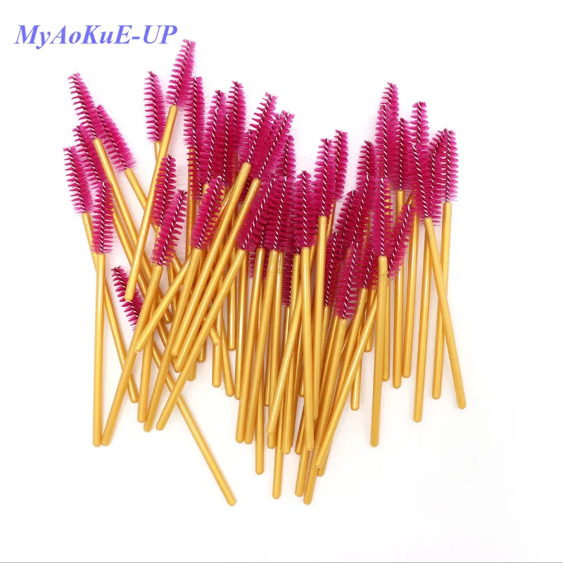 Одноразовые нейлоновые палочки для туши, 50 шт.лот, синие, золотистые, розовые, красные кисти с ручкой, кисти для макияжа ресниц, инструменты для наращивания ресниц