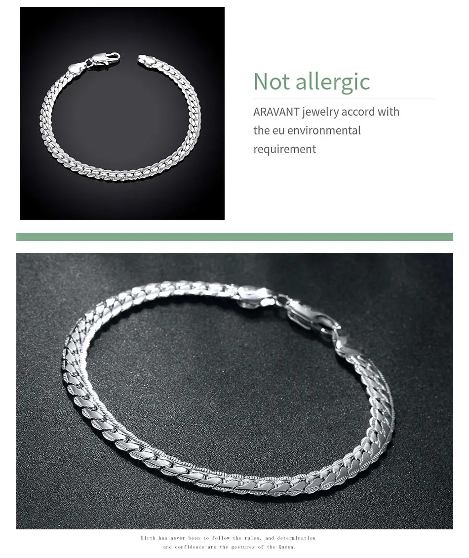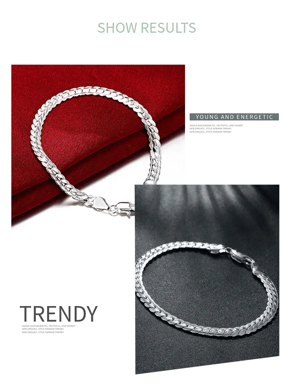 925 серебро 5 мм 20 см боком браслеты мужские модные браслеты Ювелирные изделия Подарки