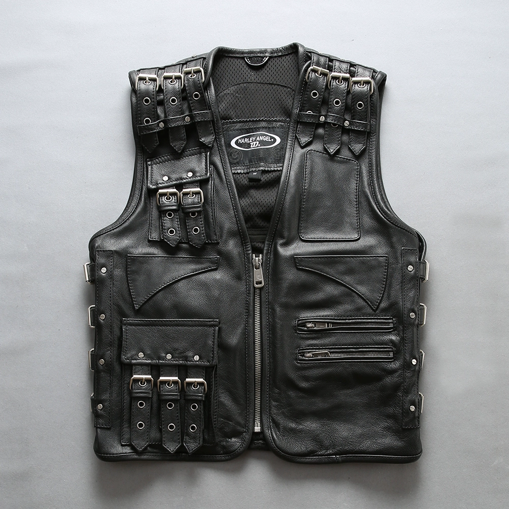 Прочтите описание! Мужской жилет HA-97105 из воловьей кожи, регулируемый, азиатского размера