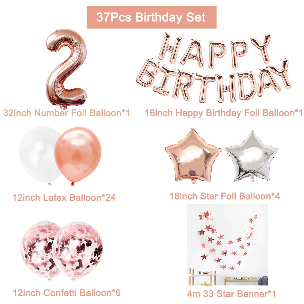 Украшения для вечеринки на 2 года, для девочек, на второй день рождения, надпись Я два из бумаги, гирлянда из флажков, цвета розового золота
