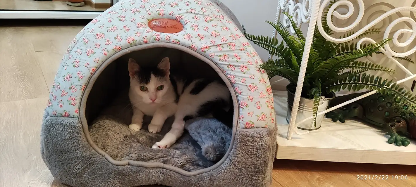 Дом для кошки очень красивый, хорошее качество, котам нравится, они спят и играют в нем, Я наполнил подушку немного больше, потому что в ней был небольшой материал. Он хорошо сшит, прочный, я рекомендую. Я покупаю 2 штуки :)