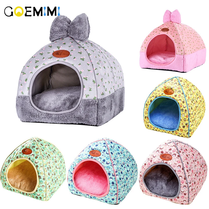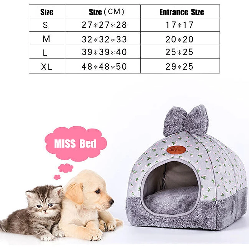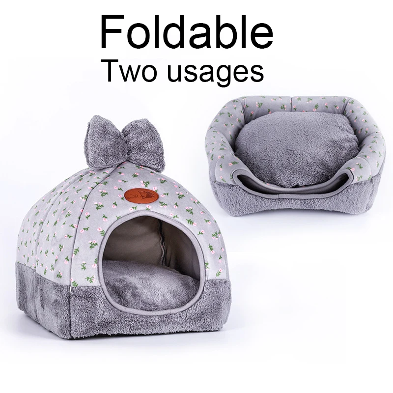 Фирменная Новинка, теплая пещера с милым бантом, зимний домик для щенка, флисовое мягкое гнездо для маленьких и средних собак, домик для кошек