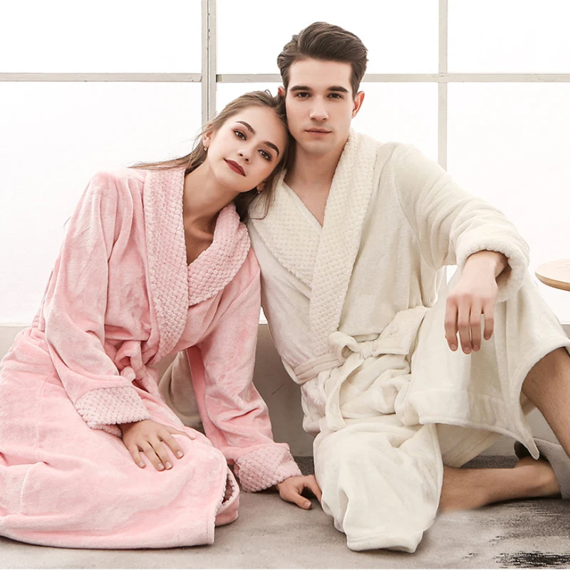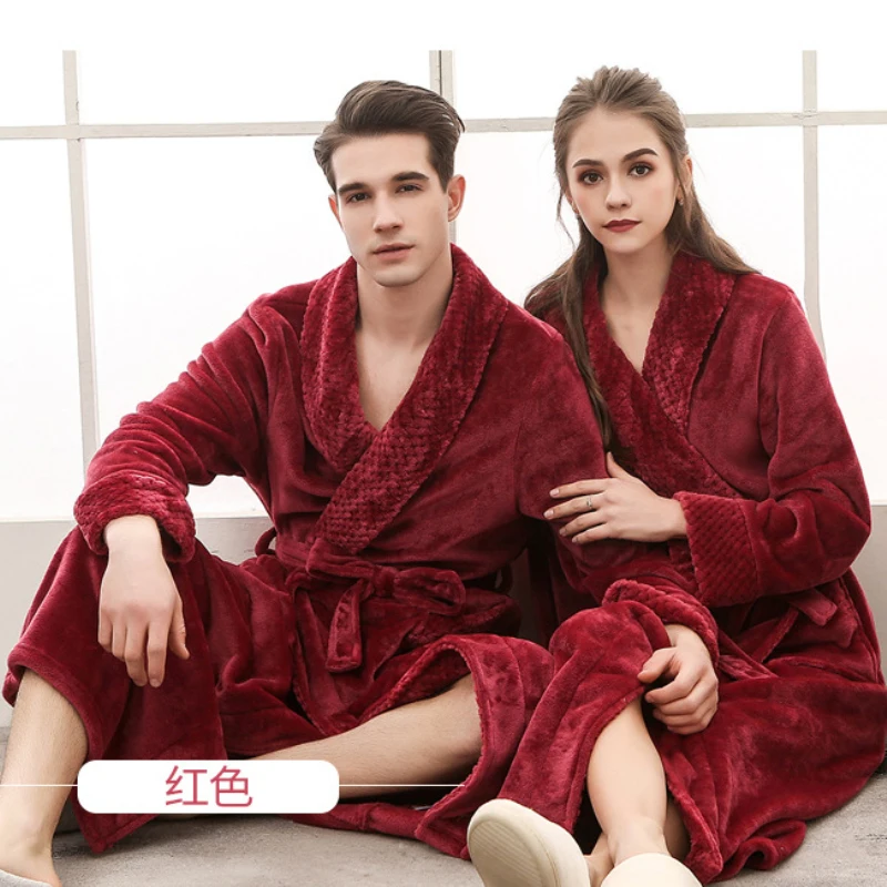 SSH0288 теплый халат для мужчин и женщин на осень и зиму, сплошной фланелевый банный халат унисекс, пижамы для пар, халат размера плюс, ночная рубашка