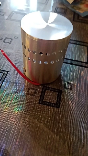 Интересная приблуда. Светит мягким цветом. Радиус конечно маленький но и этого хватает. Как ночник самое то. Как я понимаю выполнен из старого поршня но сделан добротно