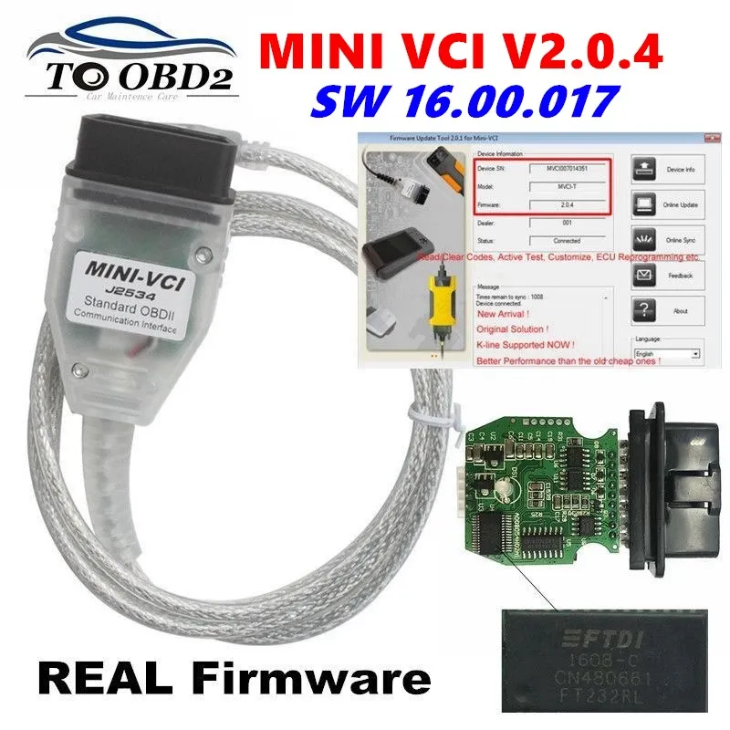 MINI VCI новая реальная прошивка V2.0.4 последняя версия V16.00.017 для Toyota j2534 K + DCAN поддерживает K-Line MINI-VCI HW2.0.4 FT232RL