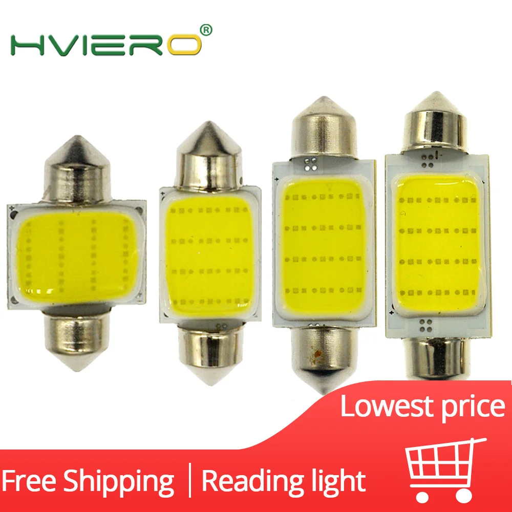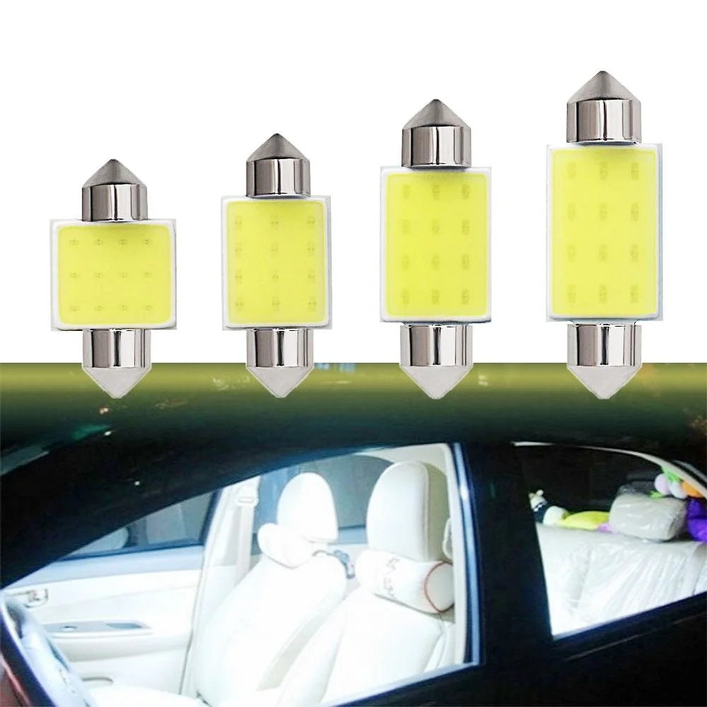 Белый Cob 12Led гирлянда купольные огни лампа для чтения 31 мм 36 мм 39 мм 42 мм C5W C10W авто светодиодные дверные огни резервная лампочка хвостовые лампы DC 12v