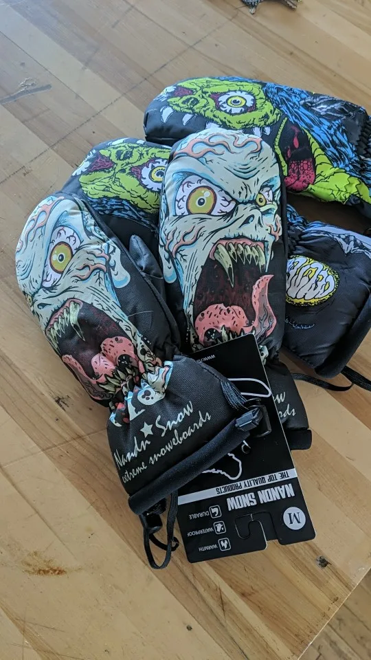 Варежки огонь, боялся что из-за перчатки внутри будут мерзнуть пальцы, но протестировали в -18-19 без ветра, всё замечательно, при активной каталке даже жарко! Принт однозначно ТОП! Качество принята не вызывает вопросов. Мне не понравилась только резинка для крепления варежки к кисти, такое ощущение, что просто взяли резинку от трусов и прицепили к варежке, ну неужели нельзя сделать нормальную стильную резинку, она же стоит кроши!