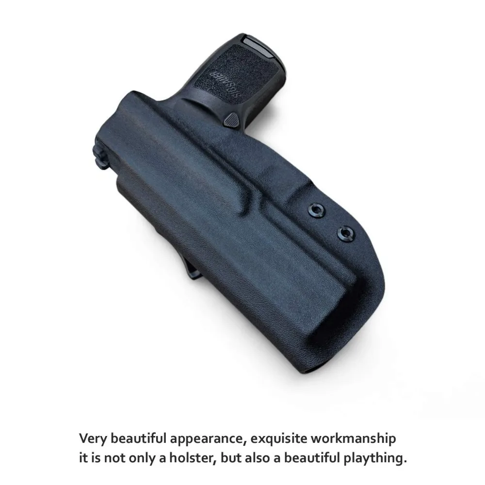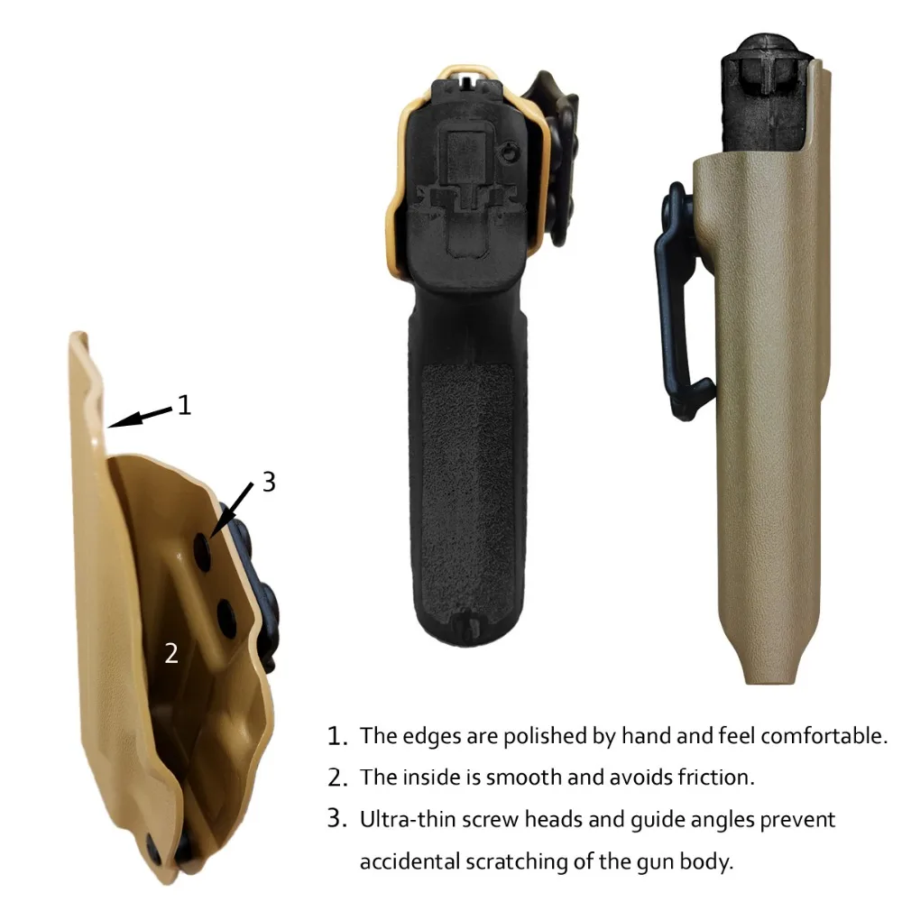 US .08 ”KYDEX ручная работа: легкий, прочный, прочный, влагостойкий, моющийся, обеспечивает комфорт и уверенность в любой ситуации. Кобура охватывает весь корпус, эффективно предотвращая пот и избегая зажимов, можно безопасно и безопасно использовать одежду.