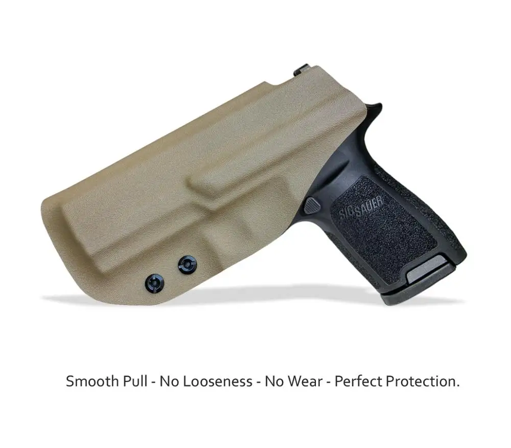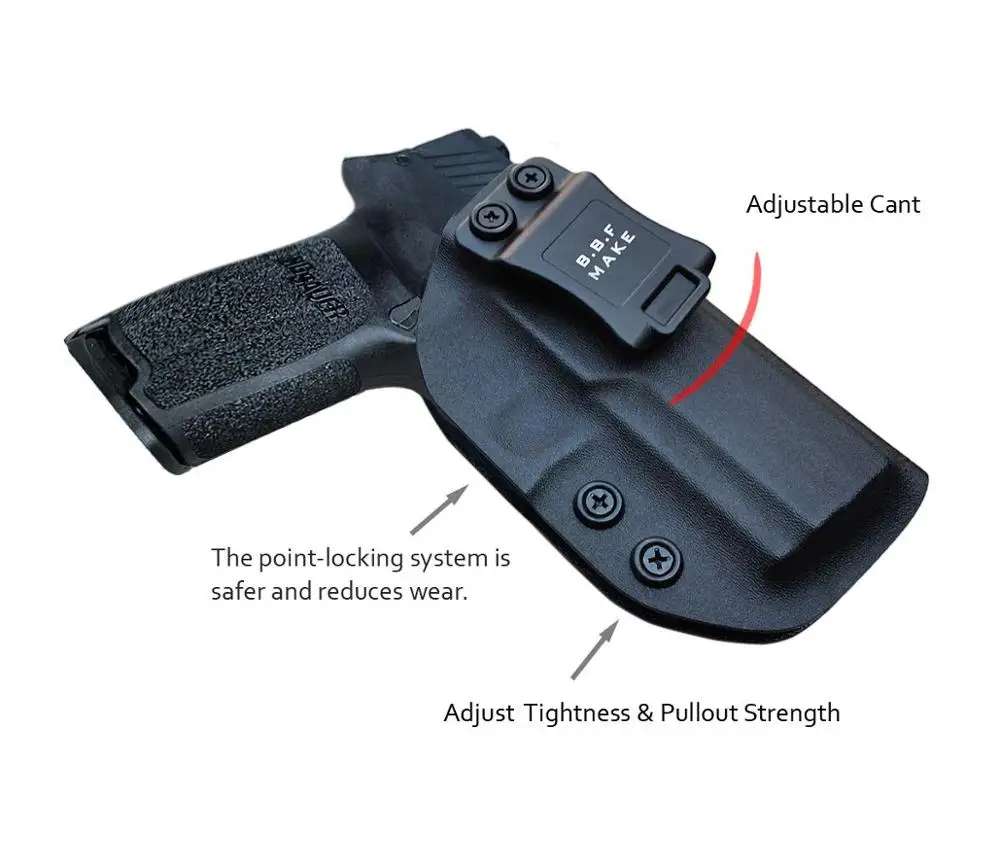 Наша кобура Sig Sauer P320 kydex имеет звуковую систему блокировки Posi-Click, и пистолет имеет четкий звук «щелчок», когда он вставлен, так что вы знаете, что ваш пистолет плотно сидит. Поскольку время реакции имеет критическое значение для выживания, мы используем установочный винт для регулировки герметичности для определения силы, необходимой для извлечения. Нейлон + ремень из стекловолокна крепкие и надежные зажимы, вы можете отрегулировать угол от 0 до 15 градусов в соответствии с вашими привычками, чтобы вы могли достичь самой быстрой скорости.