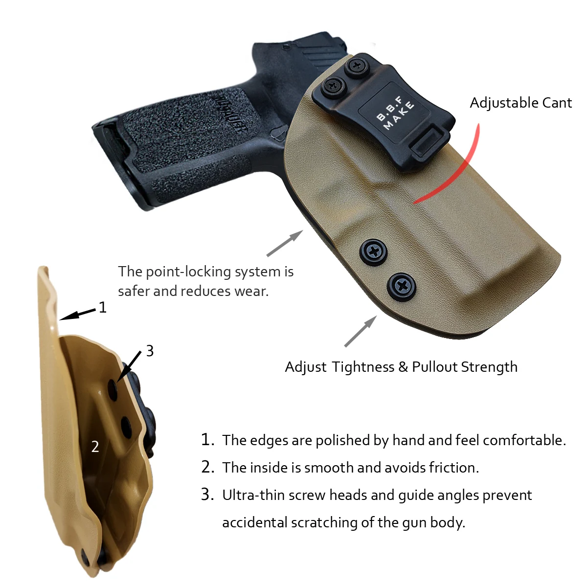 BBF сделать кобура ручной работы изготавливается из прочной 0,8 "KYDEX. Он не только водонепроницаемый, устойчивый к поту, но также обладает высокой прочностью, высокой прочностью, ударопрочностью, износостойкостью и устойчивостью к старению. Может использоваться в различных условиях. Применение. Таким образом, вы всегда можете положиться на него, чтобы сохранить свою жизнь.