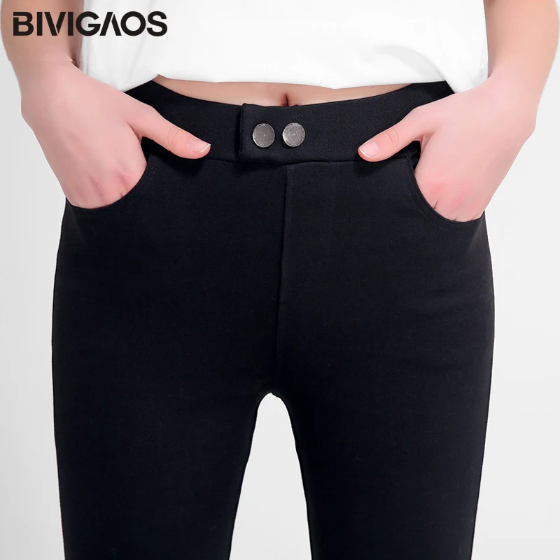 BIVIGAOS Мода и досуг Женские Новые Волшебные брюки две пуговицы высокие эластичные черные брюки-леггинсы тонкие узкие брюки узкие леггинсы Офисные штанишки