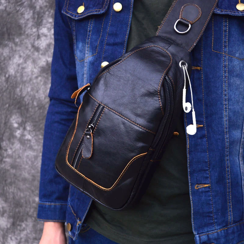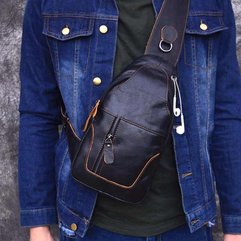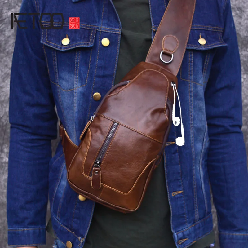 Мужская нагрудная сумка AETOO, из мягкой кожи, с защитой от взлома