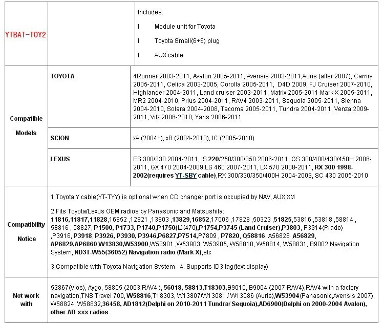 Yatour для Avensis 2003-2011 Corolla 2005-2011 Toyota Lexus Scion 2...