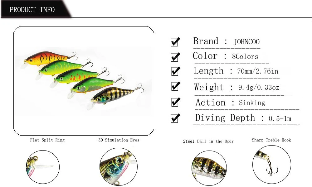 JOHNCOO жесткая приманка, гольян, приманка для ловли окуня, воблер, приманка для рыбы
