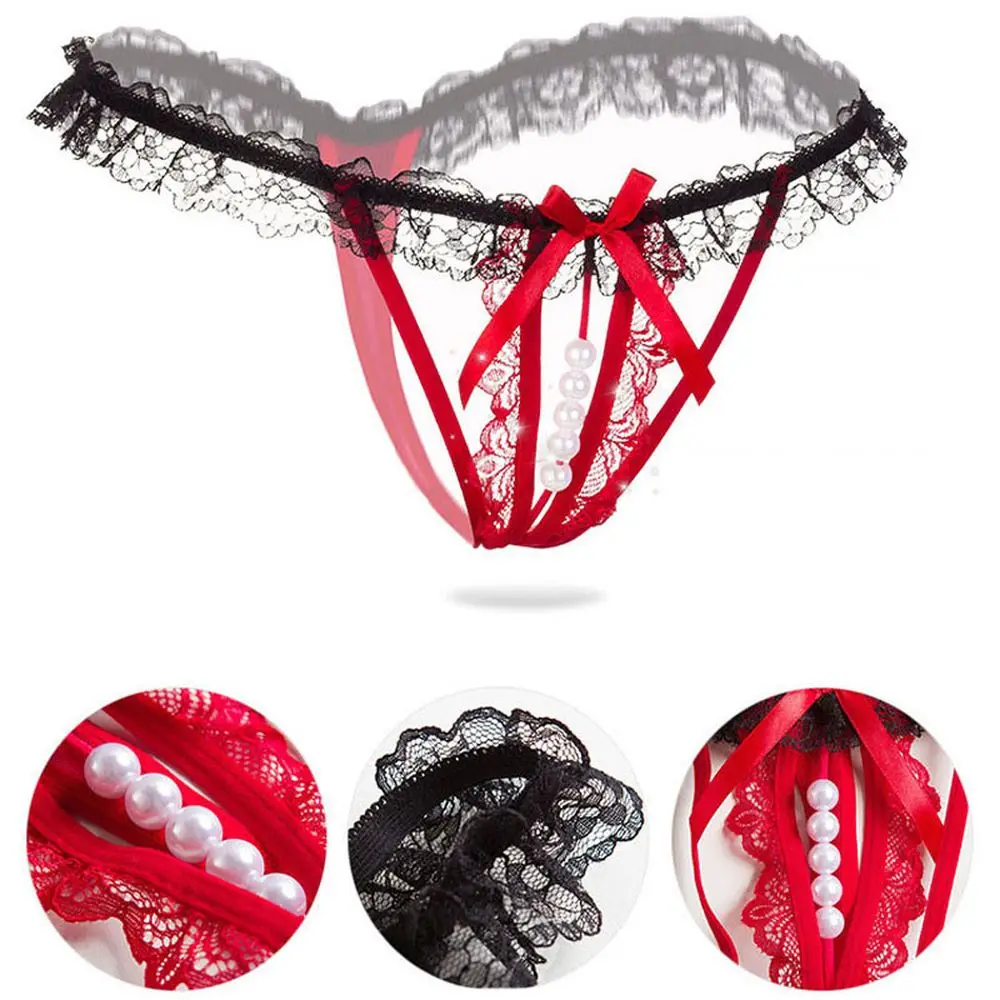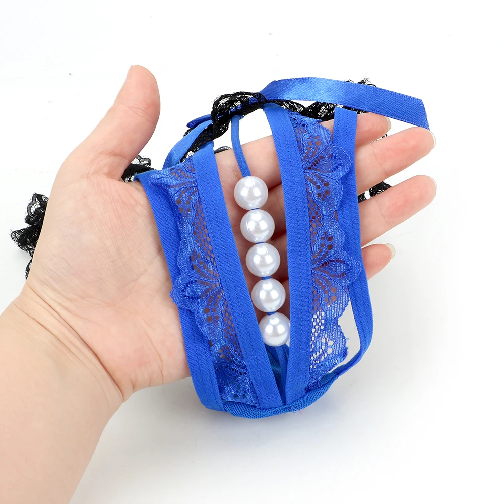 Женские стринги Lynmiss, кружевное нижнее белье с жемчугом, стринги Эротические трусики, сорочки, эротическое женское белье комбинация