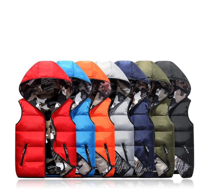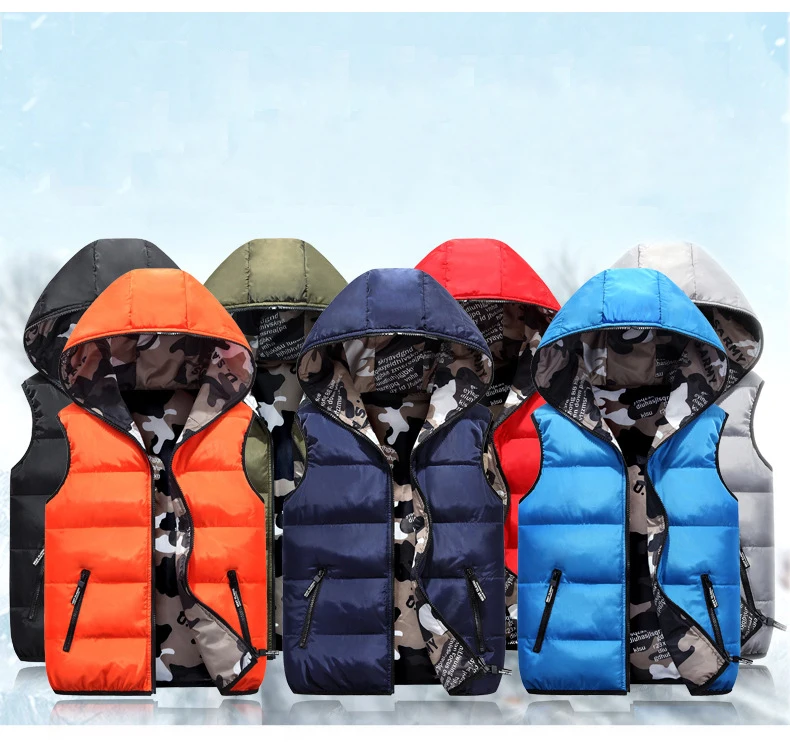 MLinina женские жилеты плюс размер с капюшоном двусторонний Камуфляжный теплый жилет Зимняя Черная Куртка Верхняя одежда Пальто без рукавов