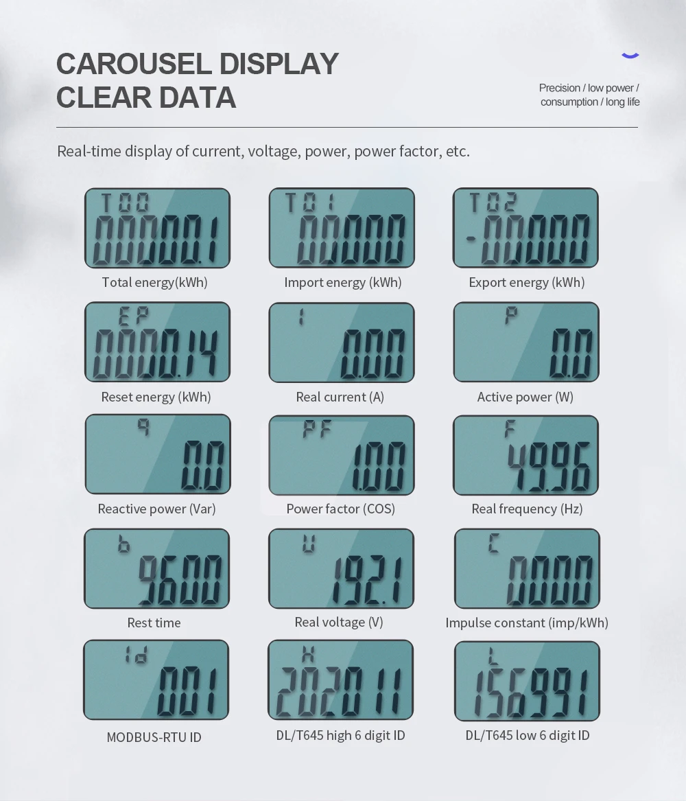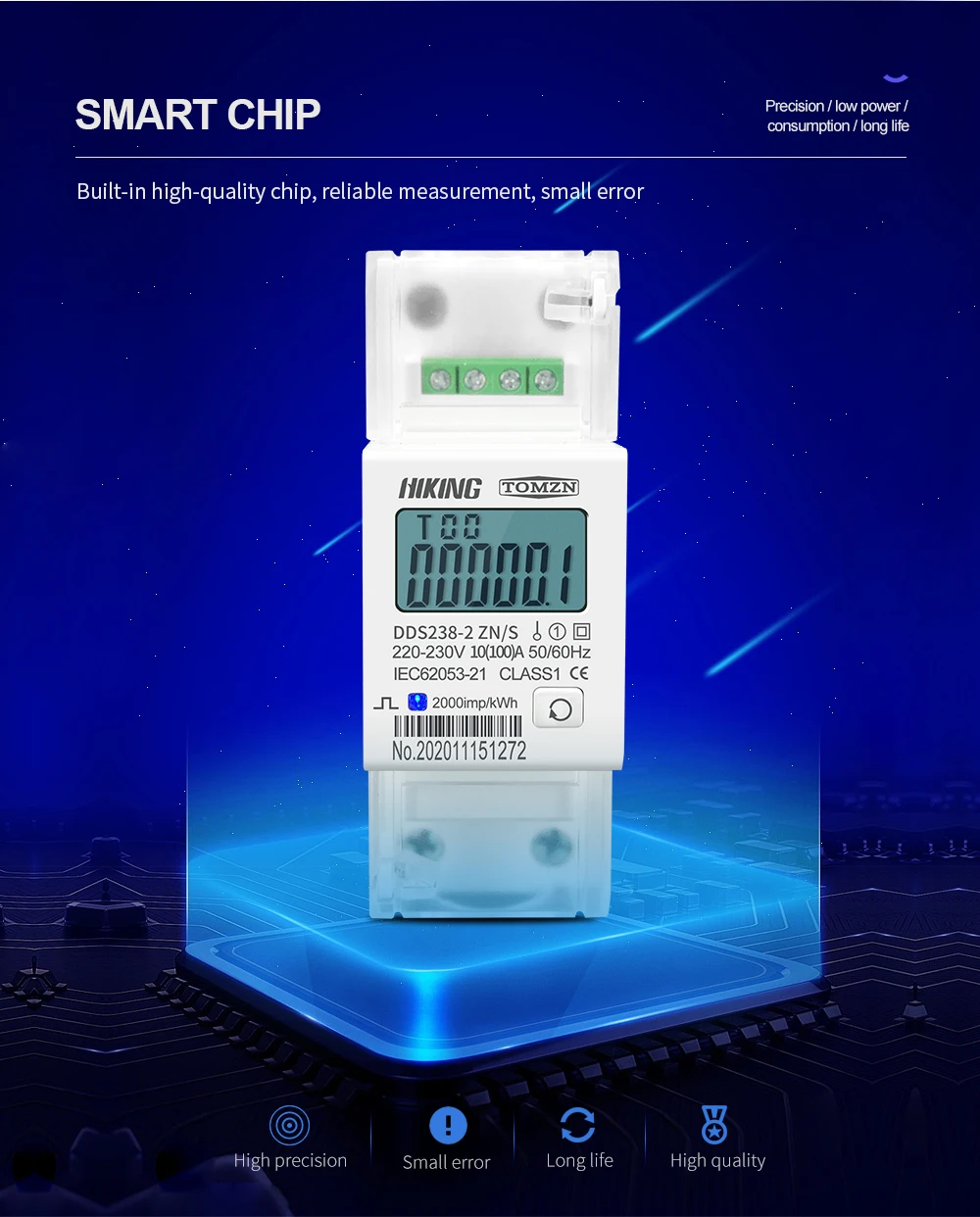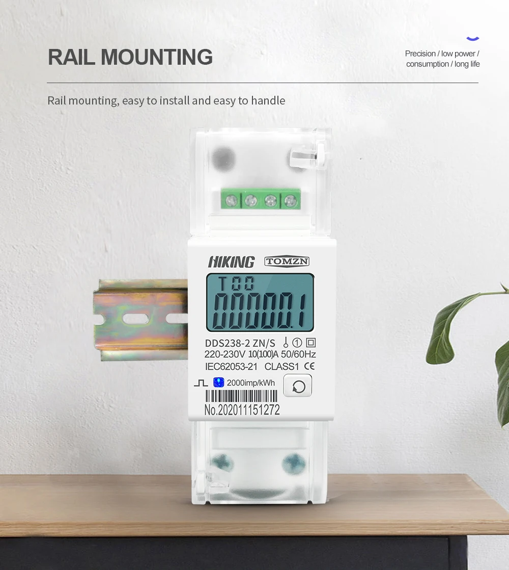 Измеритель электроэнергии, 220 А, 230 В, DDS238-2 В, 50 Гц, 60 Гц, напряжение тока MODBUS-RUT ZNS, однофазный, Din-рейка, кВтч, ватт, час, с RS485