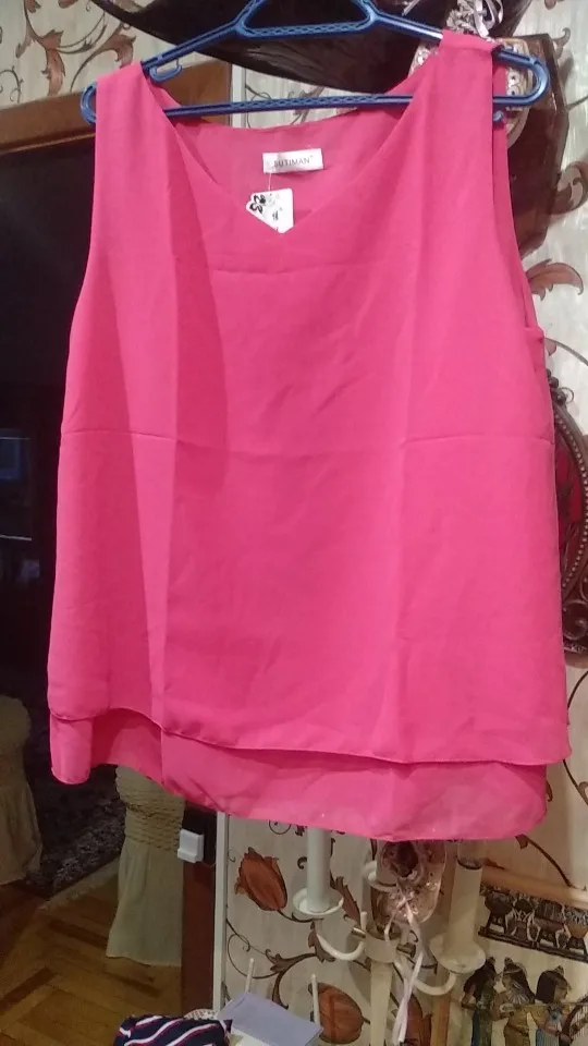 блузка норм. но очень широкая. как беременная я прям в ней. хочу её ушить. цвет яркий. нитки не торчат. запаха не было. на мой рост 156 и вес 57 кг отлично. но широко!;)) цвет сотовый не передаёт. в реале ярко красный.