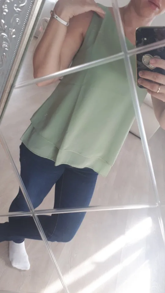 майка дурацкого покроя. а груди не 108 см как заявлено у продавца а 104...зато дальше она расклешонная до неимоверной ширины....как для беременных.
