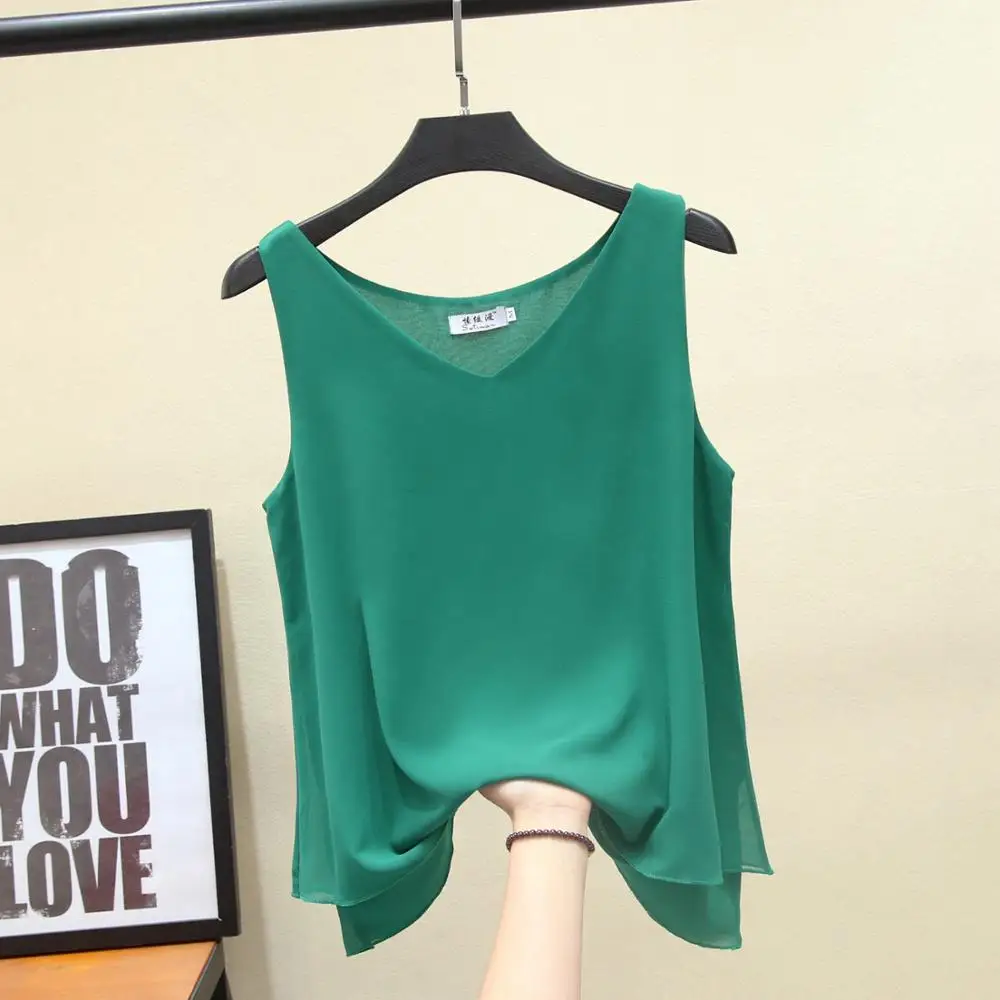 2021 модные брендовые женские блузы Новая летняя шифоновая рубашка без рукавов с v-образным вырезом, Повседневная Блузка размера плюс 5XL свободный женский топ