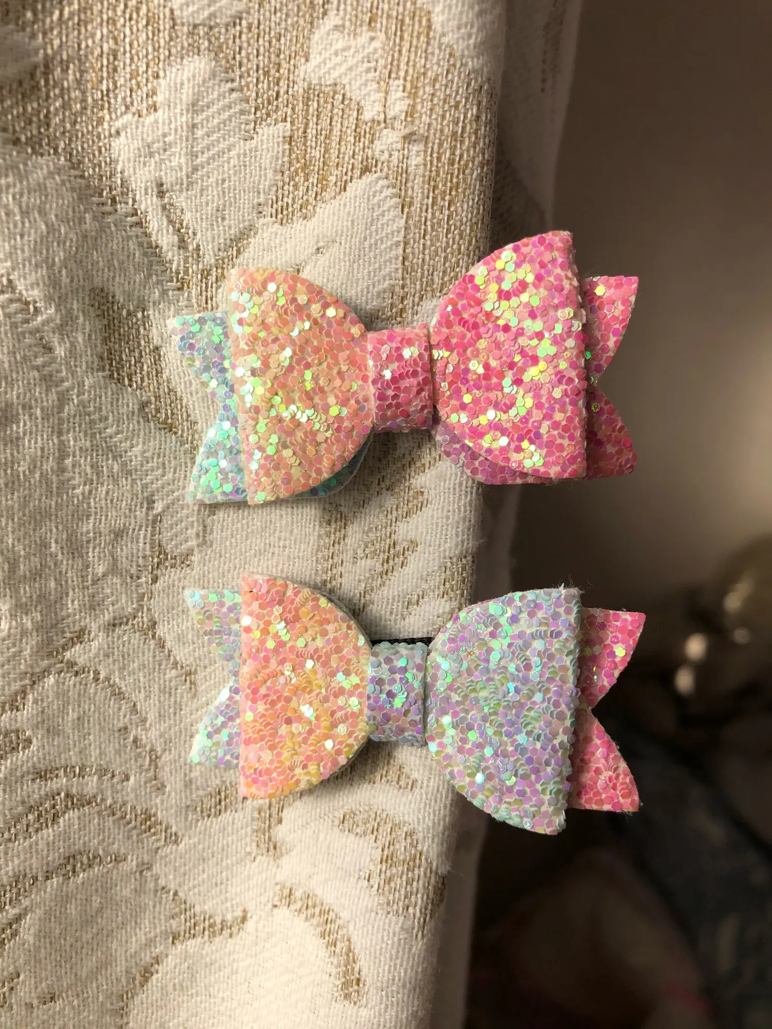 Заколки для волос для девочек, с блестками, 2 шт., заколки с бантами для волос