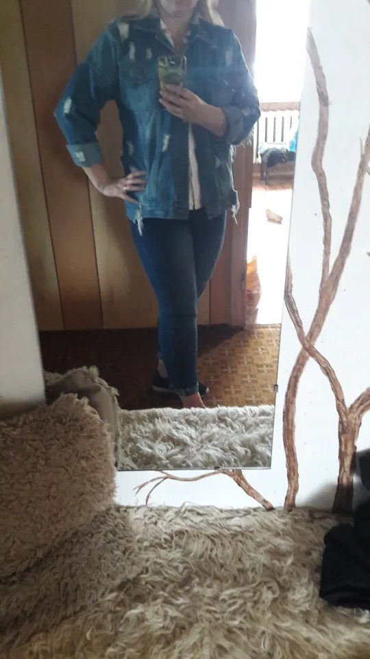 Как по мне очень удачная покупка на Али)) Села как и хотела М на 44 прям для меня,ткань довольно плотная,стильно,рвань тоже для меня удачно расположена,вобщем мне прям очень очень)) Доставка до Москвы вместе с отправкой заняла дней 11 так,что ещё один жирный плюс в копилку продавца) размер выбирала по отзывам и фотографиям)) Берите не пожалеете.