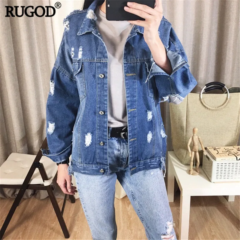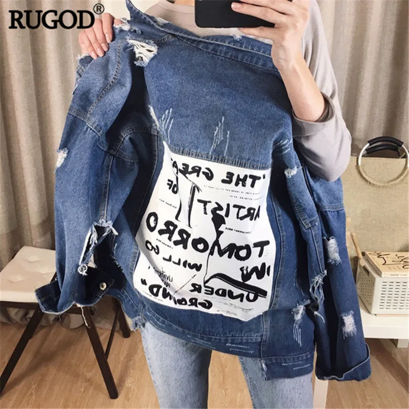 Куртка RUGOD женская джинсовая в ковбойском стиле, базовая верхняя одежда, Бомбер, винтажная ткань в стиле пэчворк, потертая рваная, с дырками, осень 2019