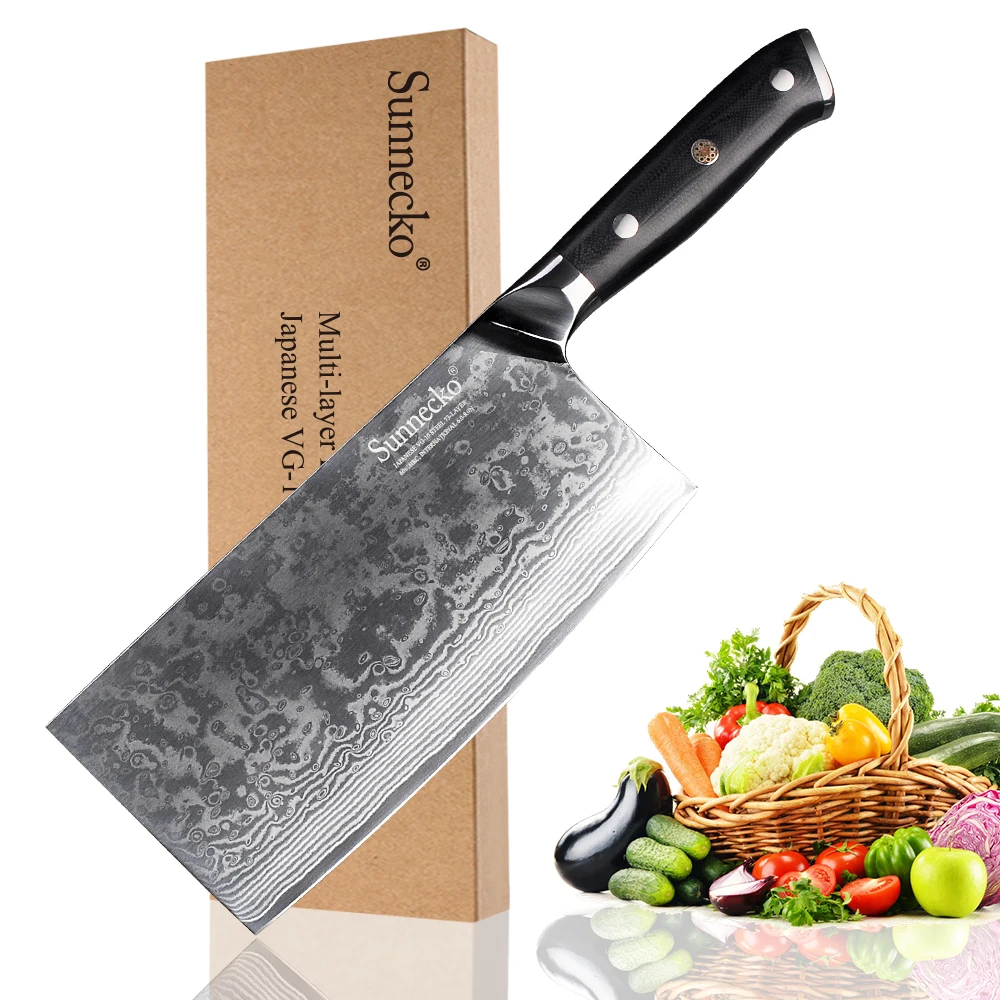 Нож-Кливер SUNNECKO VG10 из дамасской стали, японское лезвие 7 дюймов, кухонный резак, рукоятка G10, острый нож для мяса и овощей