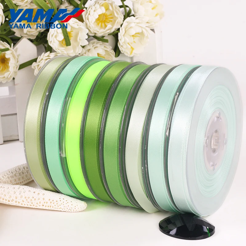 Односторонняя атласная лента YAMA, ленты 6, 9, 13, 16, 19, 22 мм, 100 ярдов, светло-зеленая вечерние ринки, свадебное украшение, ленты ручной работы в виде роз