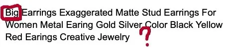 Этот магазин путает людей, потому что везде написаны большие серьги и фото нормального классического размера! Хорошо, есть размер на одной из этих фотографий, но есть классический размер, и вы даже не можете себе представить, что существует smthg также...! Так что-вы покупаете его и после, вы получаете сюрприз-veeeery маленькие серьги! Такой маленький, что вы не можете носить его, как вы! Но с такой же ценой и самой большой и «нормальной» в других магазинах! Очень расстроен! Прежде чем писать этот комментарий, я стараюсь общаться с продавцом, но он/она была не так хороша. .. Это был мой первый и последний раз, когда я купил здесь что-нибудь! Будьте внимательны, когда покупаете smthg!