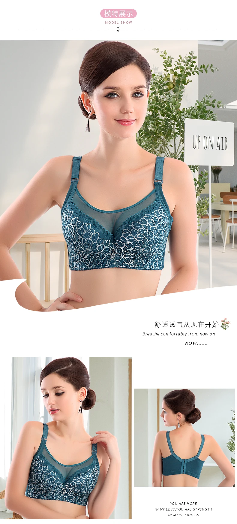 Женский бюстгальтер пуш-ап, кружевной бюстгальтер с вышивкой и широкими бретелями, большие размеры, 2020