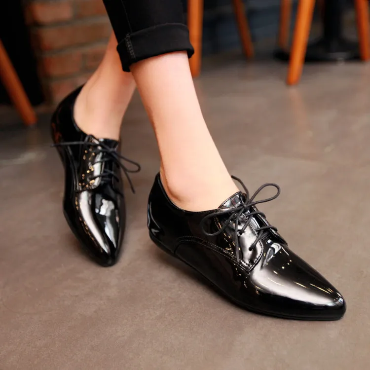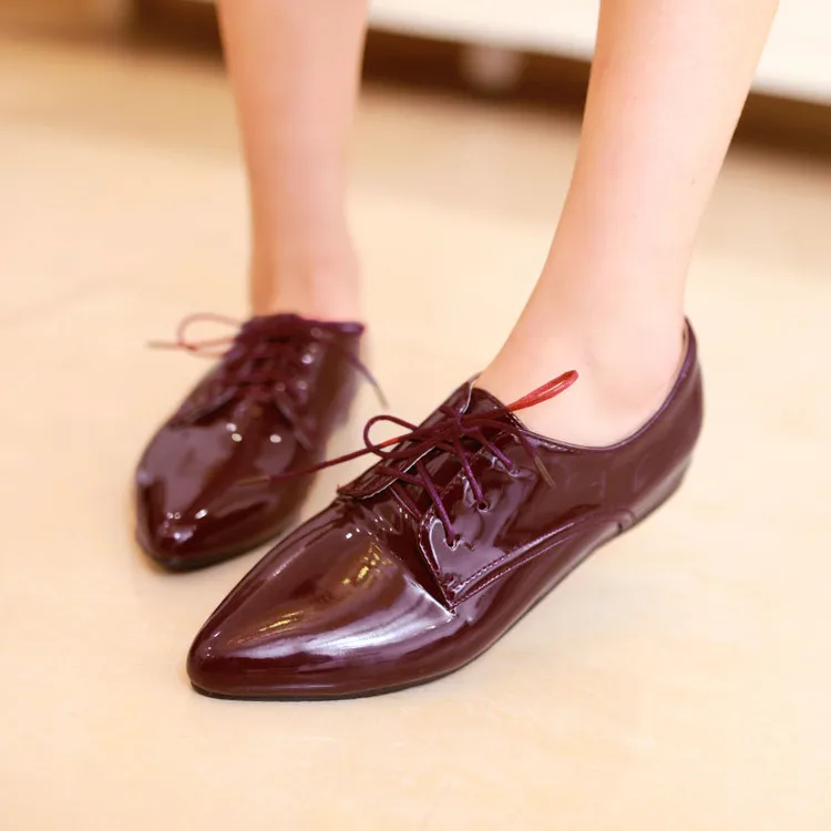 Туфли дерби женские на шнуровке, плоская подошва, заостренный носок, классические туфли, прогулочные, офисные, деловые, винно-красные, синие