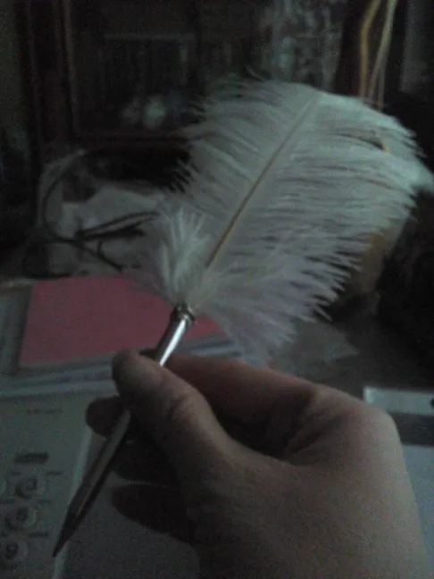 Просто не верится!! буду писать белым пером как в XVIII-XIX веке и при этом не прибегая ежесекундно, как это было тогда, к помощи чернильницы. Ручка просто прелесть!! вот только немного жаль, что её конец из серого металла и чернила черные и ещё что нельзя будет увидеть как скоро чернила закончатся, но я надеюсь что они прослужат мне долго. Специально заказала с белым пером, как в те времена.. тьфу тьфу чтобы не сглазить, пишет отлично!! похоже недаром здесь говорили что отличное качество!! колпачок на конце, что не позволит надеюсь чернилам засохнуть. Есть и наконечник в виде микрожемчужины, но я прочла что его лучше не надевать а то можно повредить стержню и чернилам, написала о том продавцу и он меня послушал не надел.. наконечник был просто в пакете с ручкой. Главное хочу похвалить за доставку!! отличная работа!! молодцы!! доставлено раньше срока ( срок был с 26 января по начало февраля ), невзирая ни на какую эпидемию, а то начинается чуть что эпидемия..задержка. Товар прелесть!!