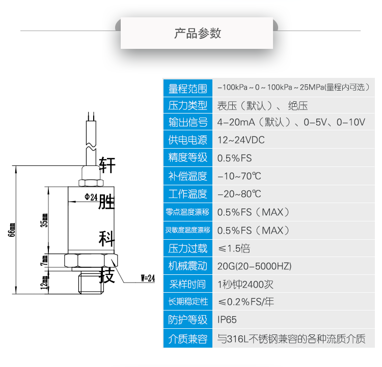 Компактный трансмиттер давления полностью сварной диффузии кремния датчик давления полная длина 66 мм