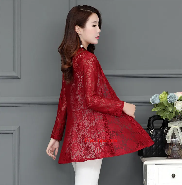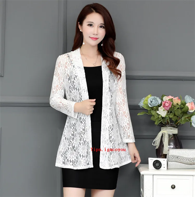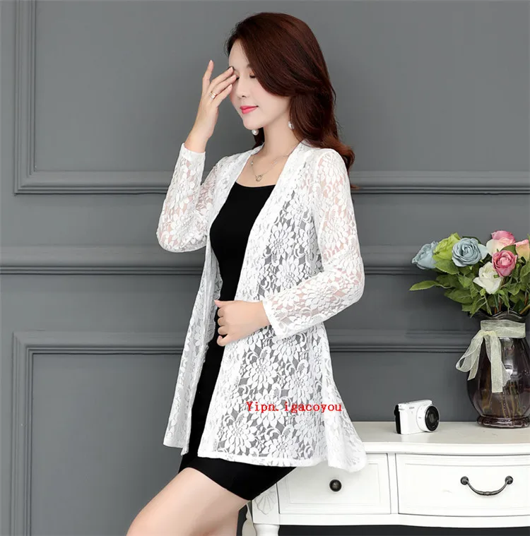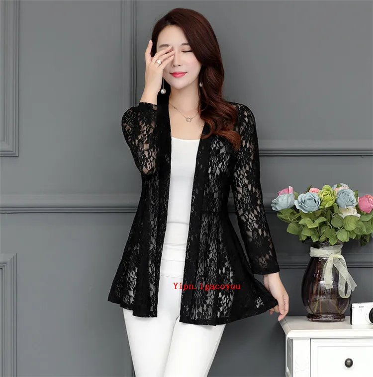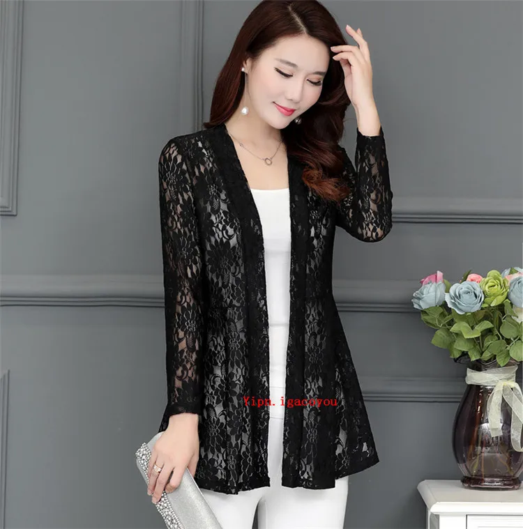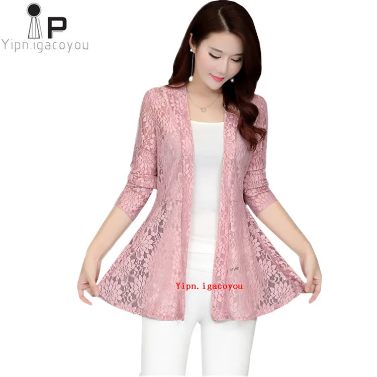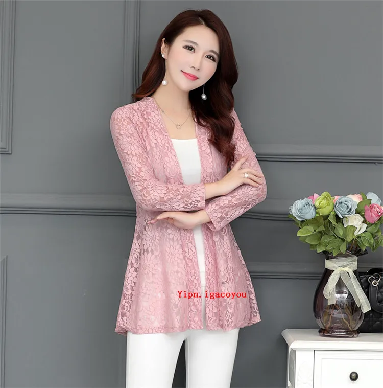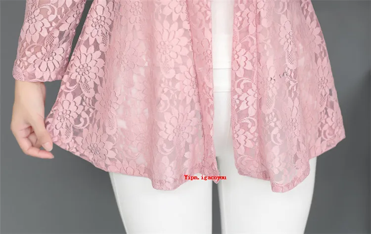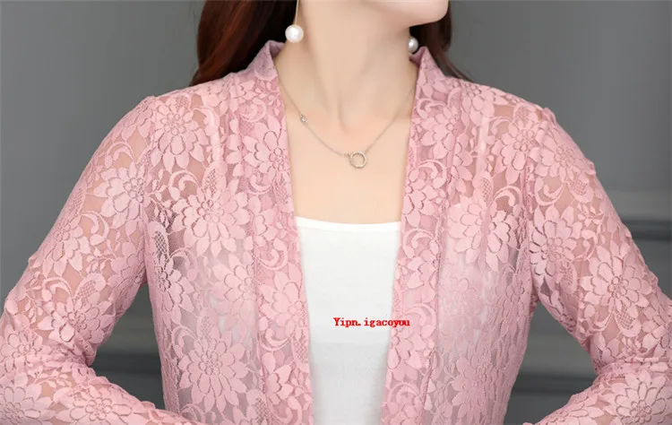 Длинное женское кружевное пальто, кардиган, летняя женская розовая сетчатая пряжа, ажурная Солнцезащитная одежда, шаль, женские пальто, Элегантная черная куртка, Топ