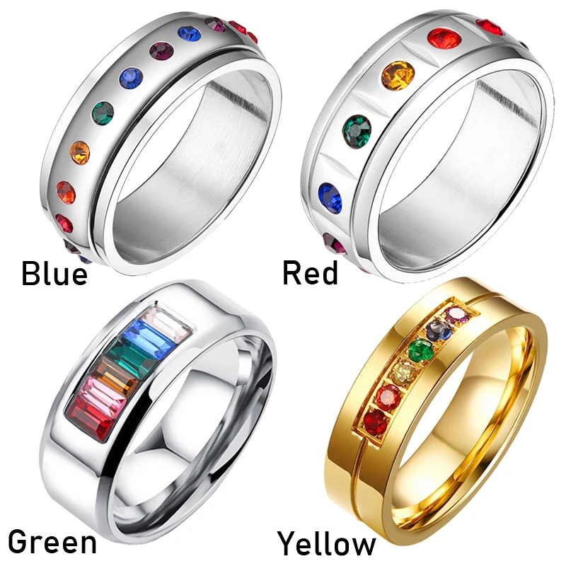 Кольцо ЛГБТ, мужское, женское, разноцветное, из нержавеющей стали