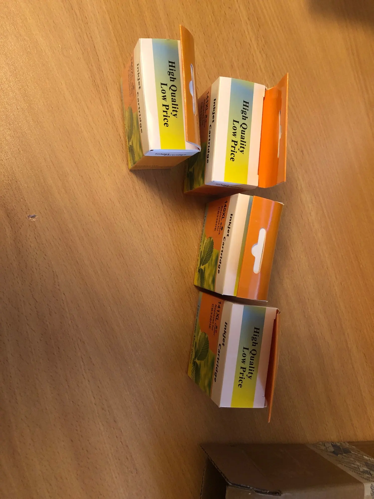 катриджи работают, при установке принтер ругался на цветной принтер и говорил что катриджи ранее уже были использованы, но при повторном включении принтера уже не ругался.