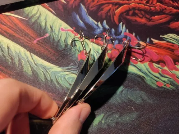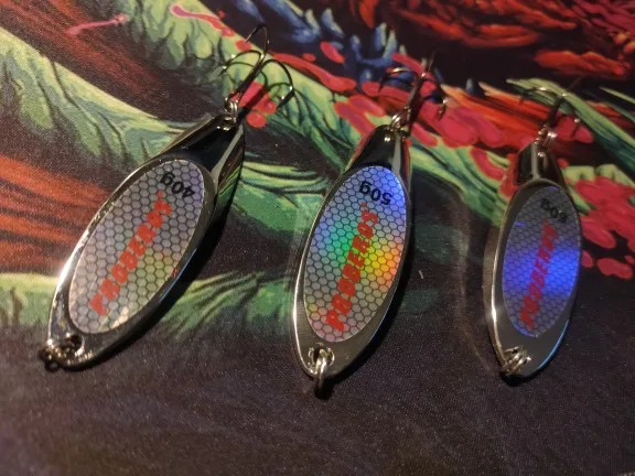 Доставка была нормальной. Ложка соответствует описанию. Металл блестящий, но его можно поцарапать. Я надел на него вспомогательный крючок и большой тройной крючок. Хорошее литье. Это обычная ложка с хорошей производительностью при использовании. Рекомендовано