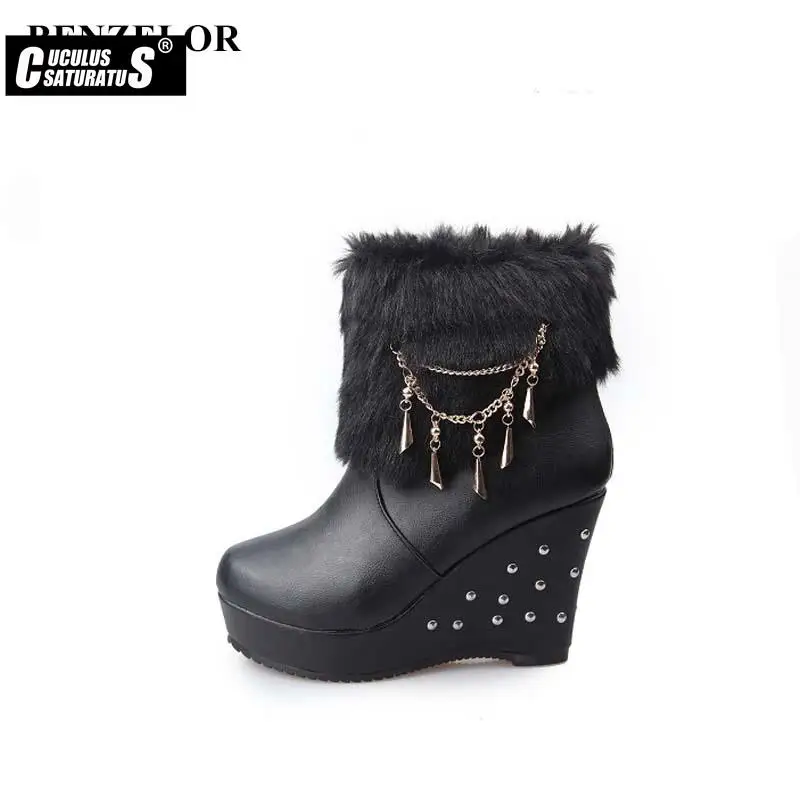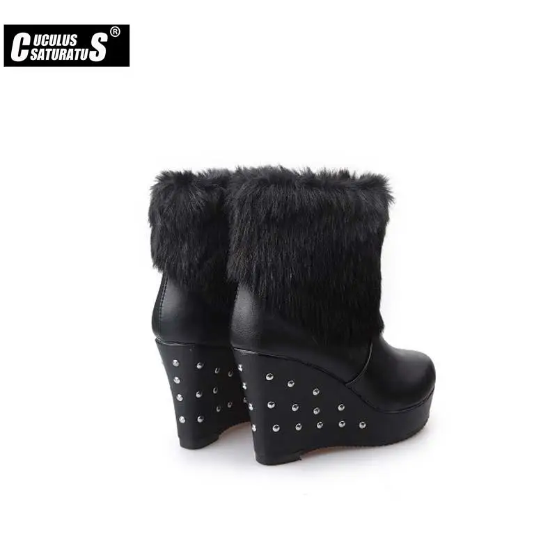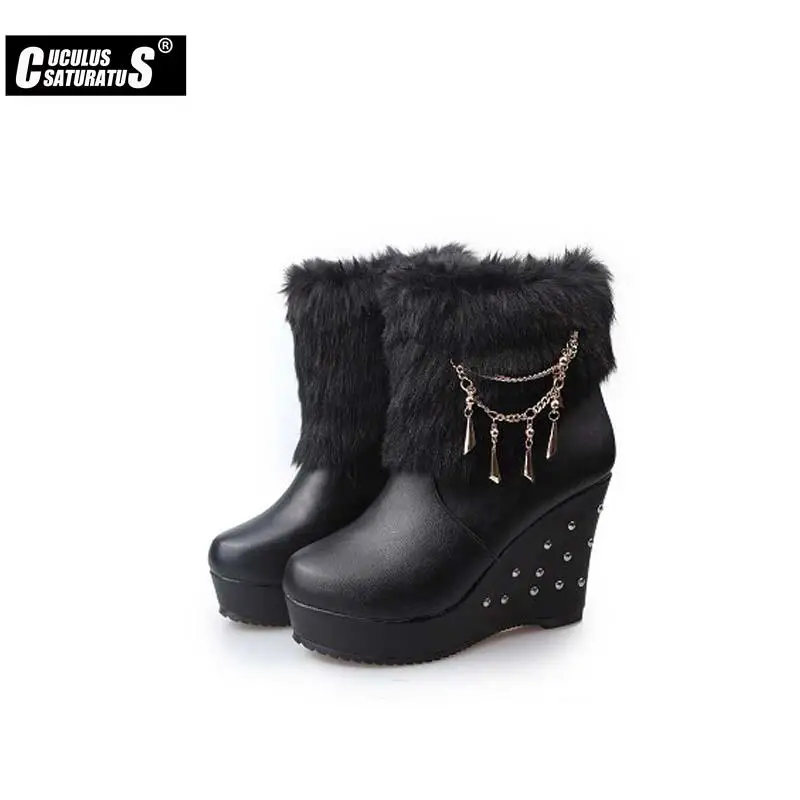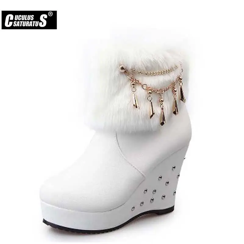 Зимние Модные женские ботинки Cuculus 2022 на танкетке из искусственного меха, женские ботинки на платформе, теплые роскошные женские ботинки для снега, белые 1034