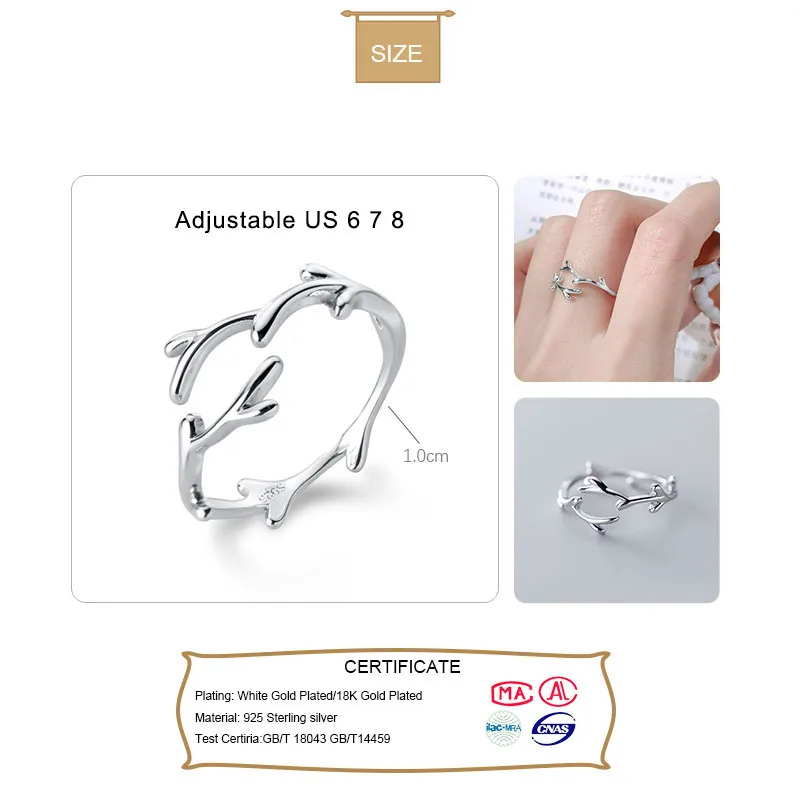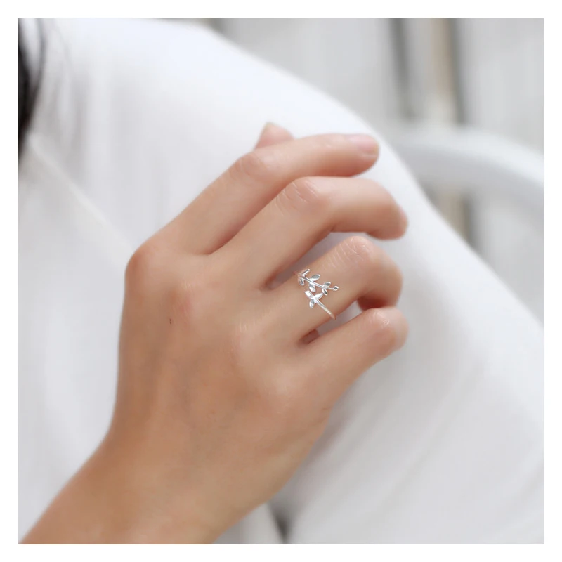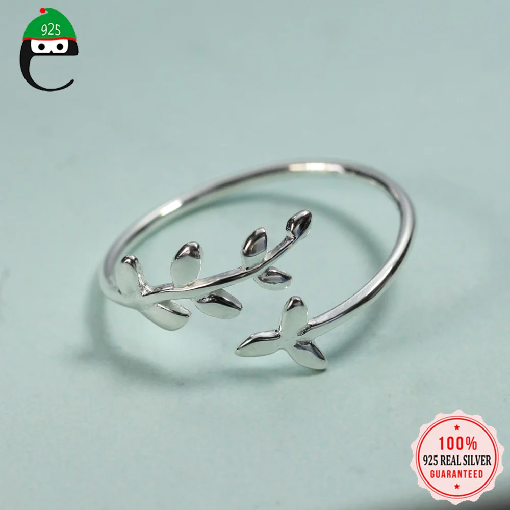 Кольцо с листьями ElfoPlataSi, открывающееся из серебра 100% пробы, размер 5, 6, 7, для девочек-подростков, подарок на Рождество, XY555, 925