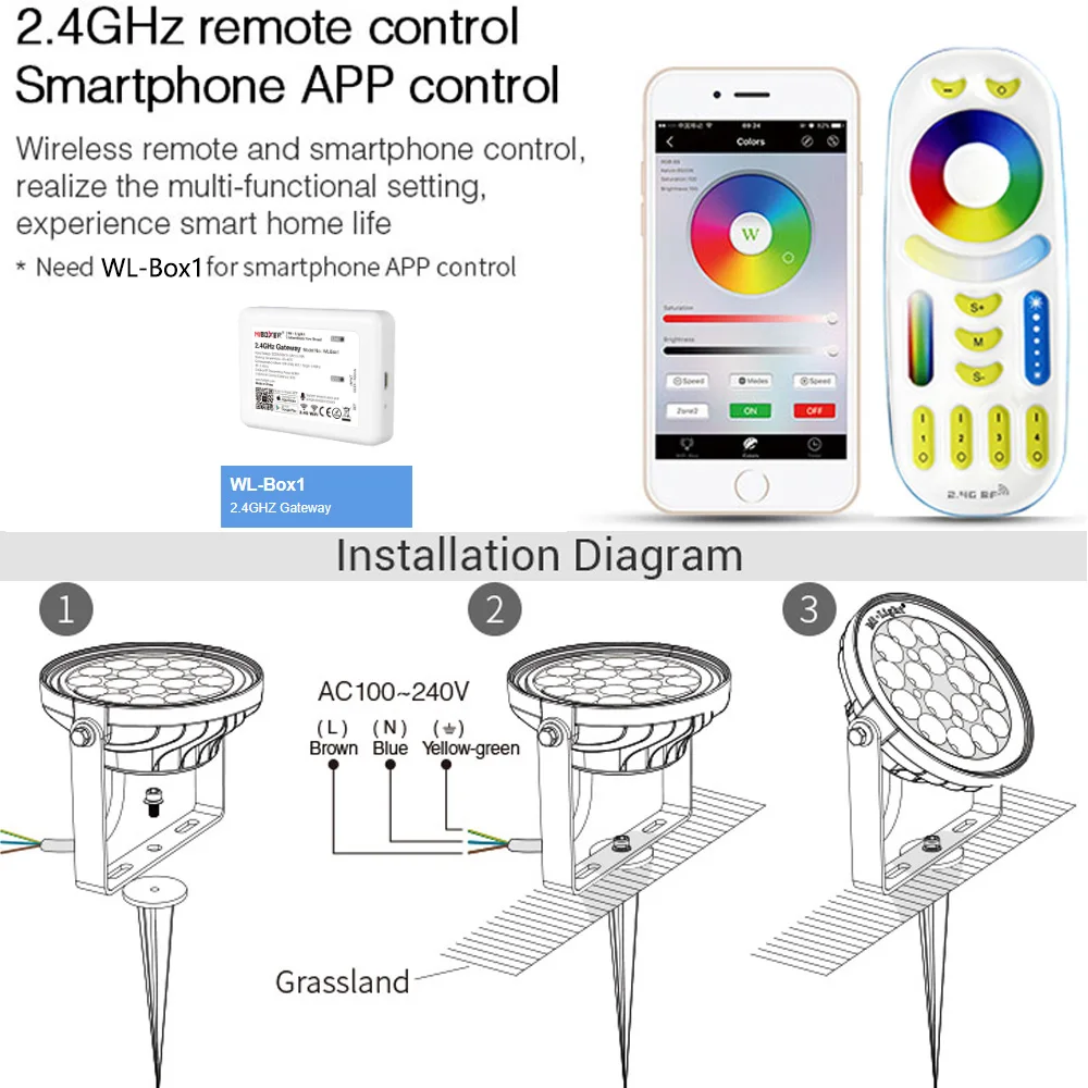 FUTC03 15 Вт RGB + CCT светодиодная садовая лампа 110 В 220 В Уличный Точечный светильник водонепроницаемый IP66 умный светильник для газона Can APP 2,4 ГГц дистанционное управление