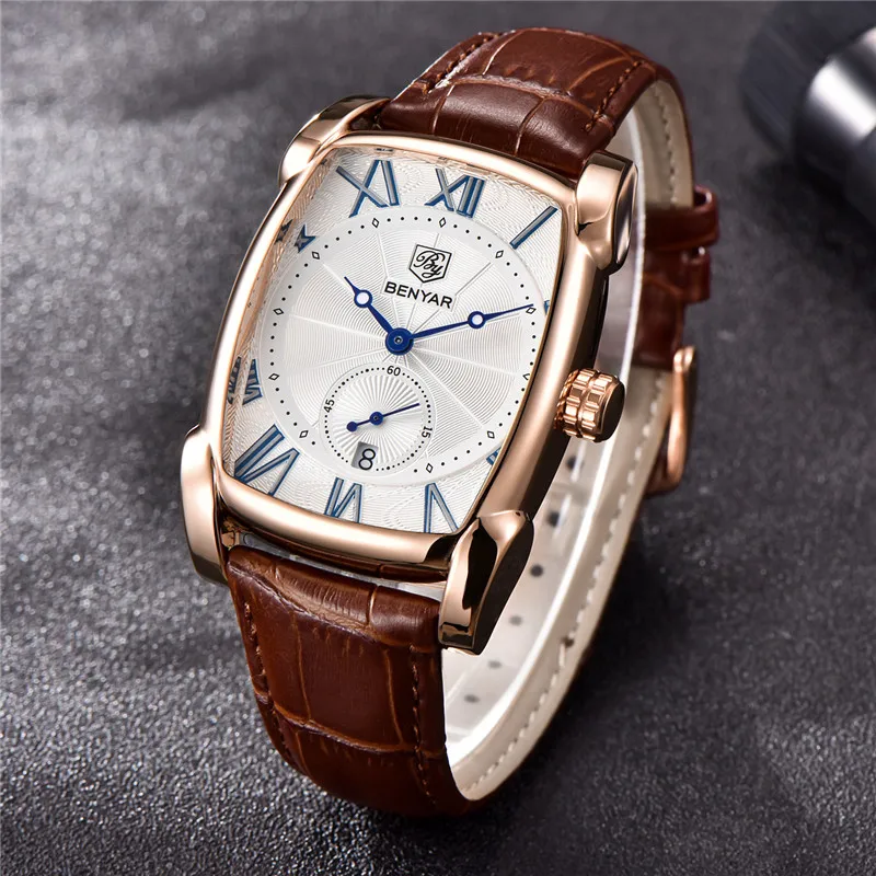 Часы наручные BENYAR мужские в стиле милитари, брендовые Роскошные спортивные деловые водонепроницаемые, золотистые, 5114