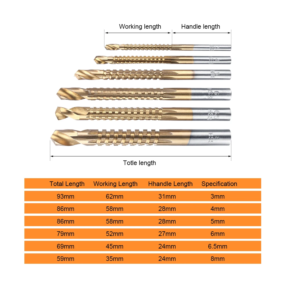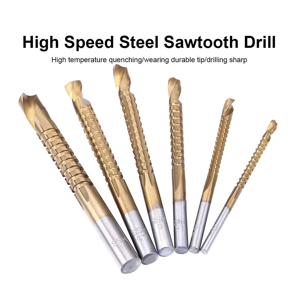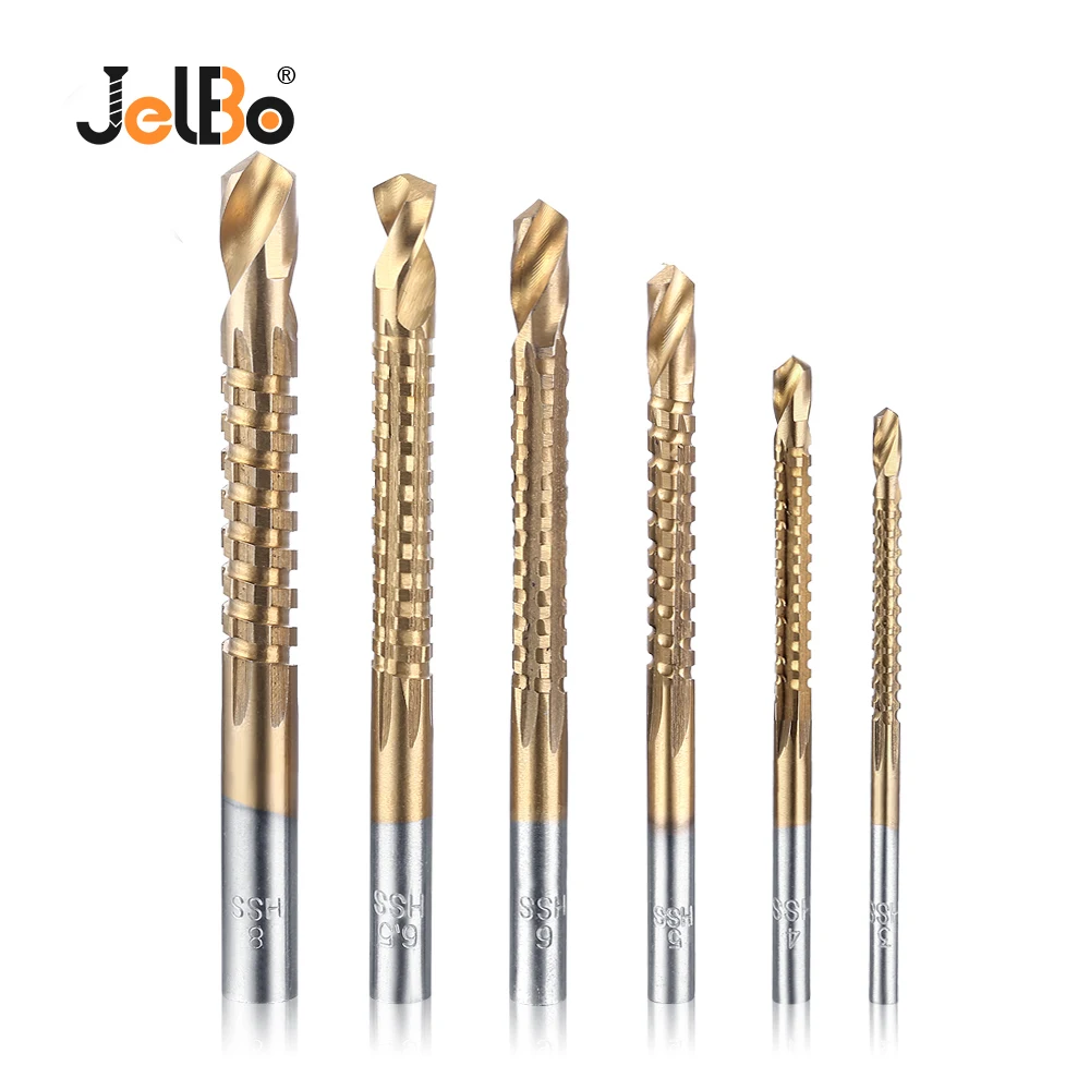 JelBo HSS сверла с отверстием, 6 шт. сверла с титановым покрытием, набор инструментов для резки, плотника, деревообработки металла