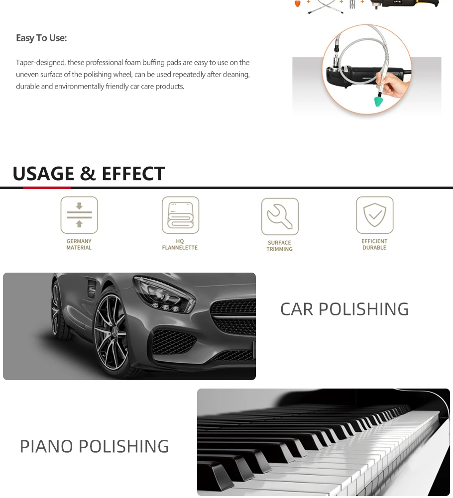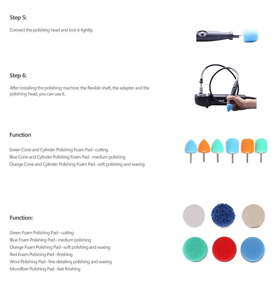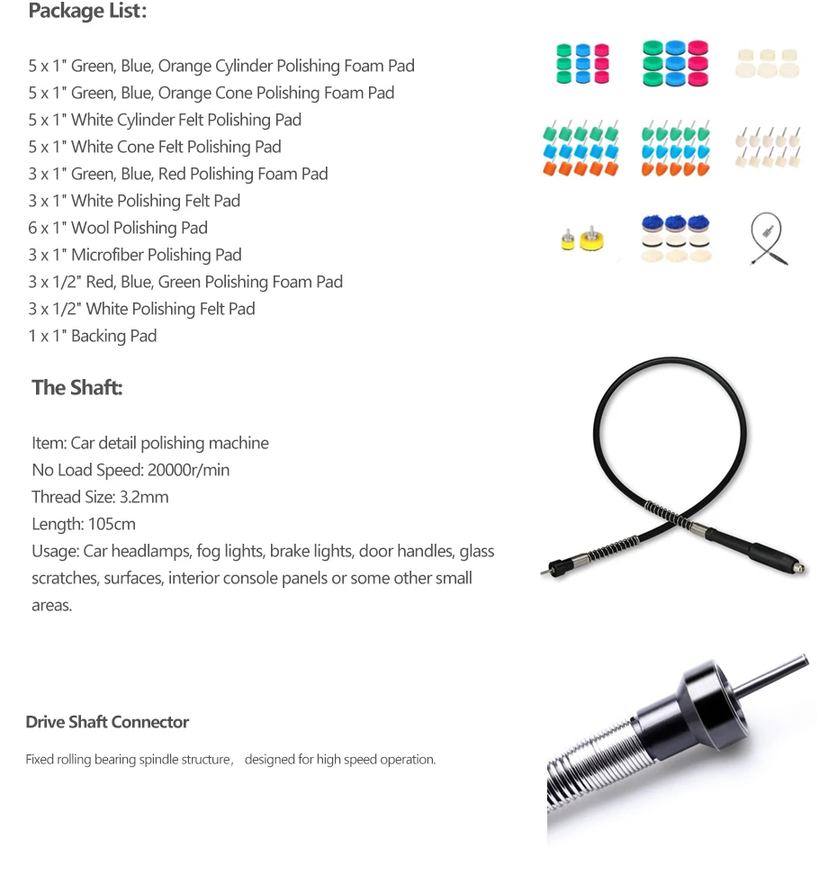 Товар соответствует описанию, очень удобная вещь для трудно доступных мест, в качестве привода использую шуруповерт хотя в комплекте есть переходник для полировальной машинки но это не совсем удобно с шуриком лучьше.