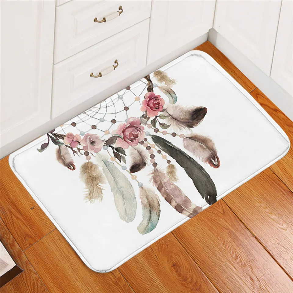 Постельный выпуск, ковер Ловец снов, нескользящий мягкий ковер, напольный коврик мандалы, впитывающий богемный цветной коврик с перьями для спальни