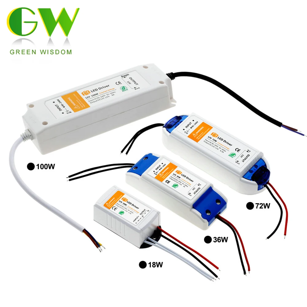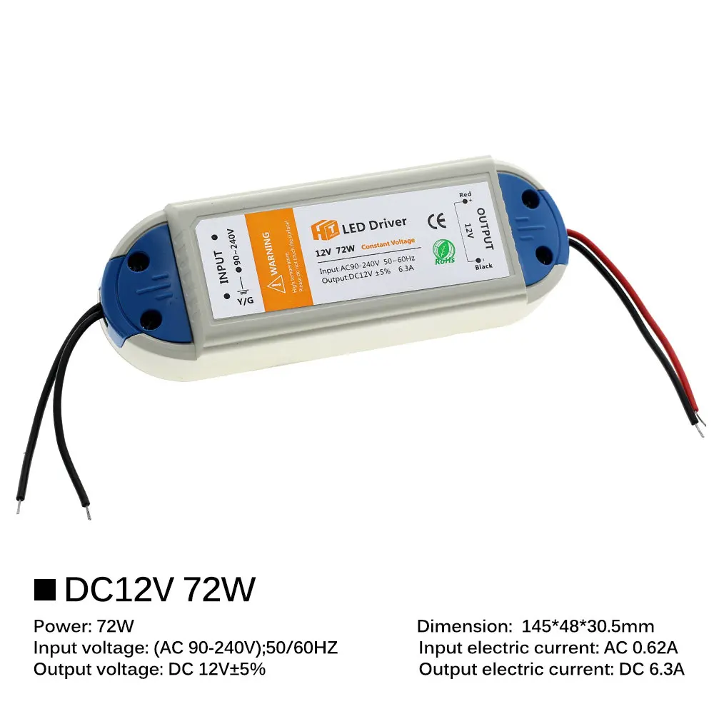 Трансформатор питания для светодиодной ленты 12 В, 18 Вт, 36 Вт, 72 Вт, 100 Вт